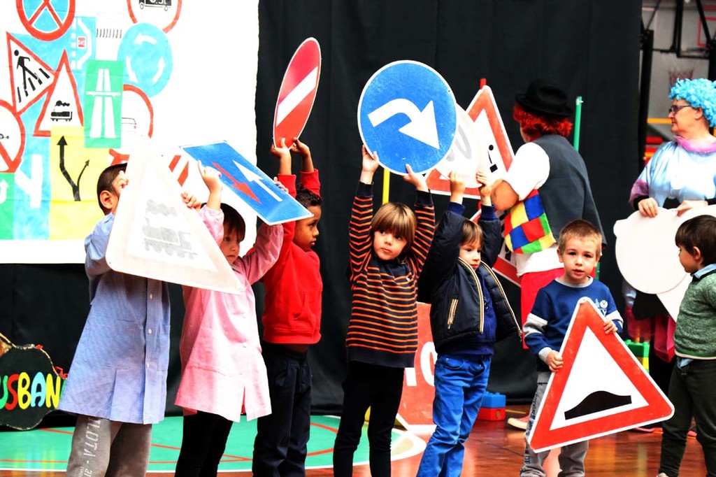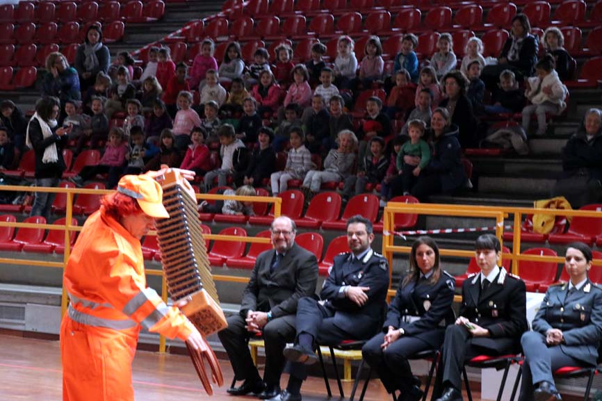 A dan manforte per spiegare ciò che dicono i tutori dell'ordine, gli animatori Paco e Celestina, che hanno messo in scena, coinvolgendo i piccoli invitati (stamane toccava ai bimbi dell'Asilo), alcuni spettacolini con segnali stradali e giochi di traffico stradale. Domani toccherà ai bambini delle Elementari.