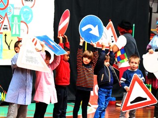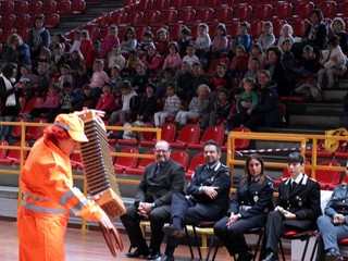 A dan manforte per spiegare ciò che dicono i tutori dell'ordine, gli animatori Paco e Celestina, che hanno messo in scena, coinvolgendo i piccoli invitati (stamane toccava ai bimbi dell'Asilo), alcuni spettacolini con segnali stradali e giochi di traffico stradale. Domani toccherà ai bambini delle Elementari.