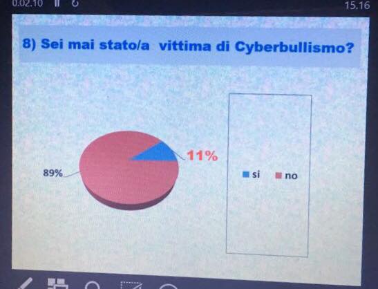 I dati esposti su un campione di 832 ragazzi hanno evidenziato diverse problematiche come ad esempio l’11% dei giovani che ha dichiarato di essere vittima di cyberbullismo, il 19% ha preso parte ad uno scambio di messaggi sessualmente espliciti e/o foto e video a sfondo sessuale e il 98% dei quattordicenni fa uso dei social network ( i principali Facebook, Instagram e Whatsapp”.