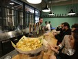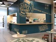 A fianco dello spazio destinato al birrificio si trova un grande banco, dove 10 spine serviranno la birra sfusa prodotta a Bologna e a Piozzo insieme a tutta la gamma completa delle birre Baladin. In cucina il piatto principale è rappresentato dall’hamburger rigorosamente proposto con carni piemontesi Presidio Slow Food, affiancato da una vasta scelta di proposte vegetariane e dalle ormai classiche “fatate Baladin”, le chips aromatizzate con spezie sfiziose.