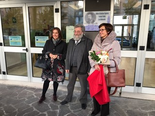 La cerimonia si è divisa in due parti. Alla ore 15 è stata scoperta la targa presso il plesso situato in corso XXV Aprile. Poi, a seguire, intorno alle ore 16, l'analoga manifestazione è stata ripetuta davanti all'edificio di via Allende.