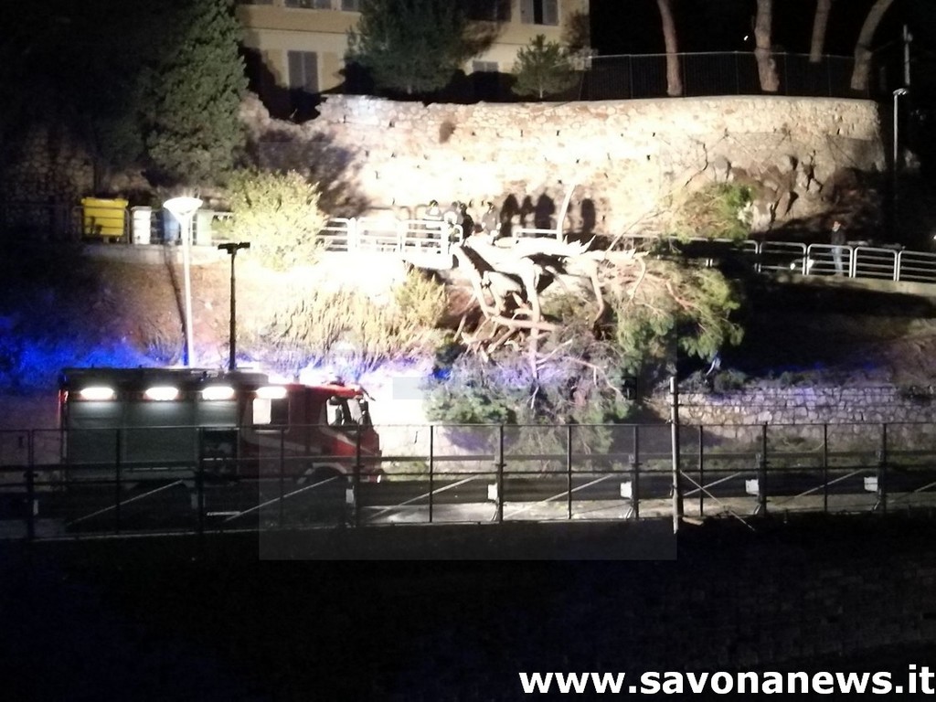 Pietra Ligure. Albero precipita su via della Cornice. Il vento l'ha sradicato dal cortile della scuola elementare (FOTO E VIDEO)