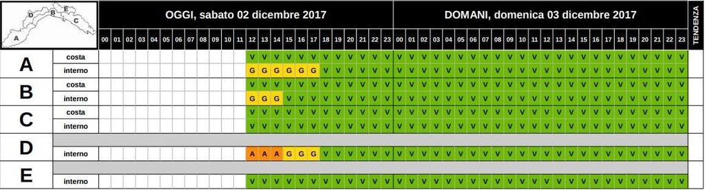 INTERNO ZONA A: ALLERTA GIALLA fino alle 18.00 di oggi, sabato 2 dicembre