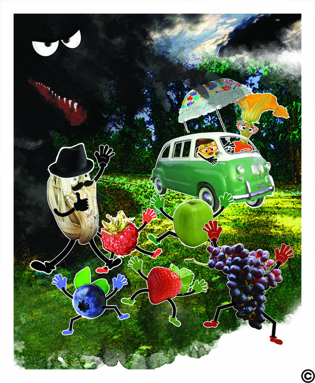 Giunti in vista di Portacomaro Stazione, la nube nera oscurava ormai il cielo, rendendo l’aria pesante e irrespirabile. Davanti alla Centrale di Polizia, il camioncino con tutti i suoi occupanti venne risucchiato da un turbine nero, che li fece girare e girare e girare... come un centrifugato di frutta.