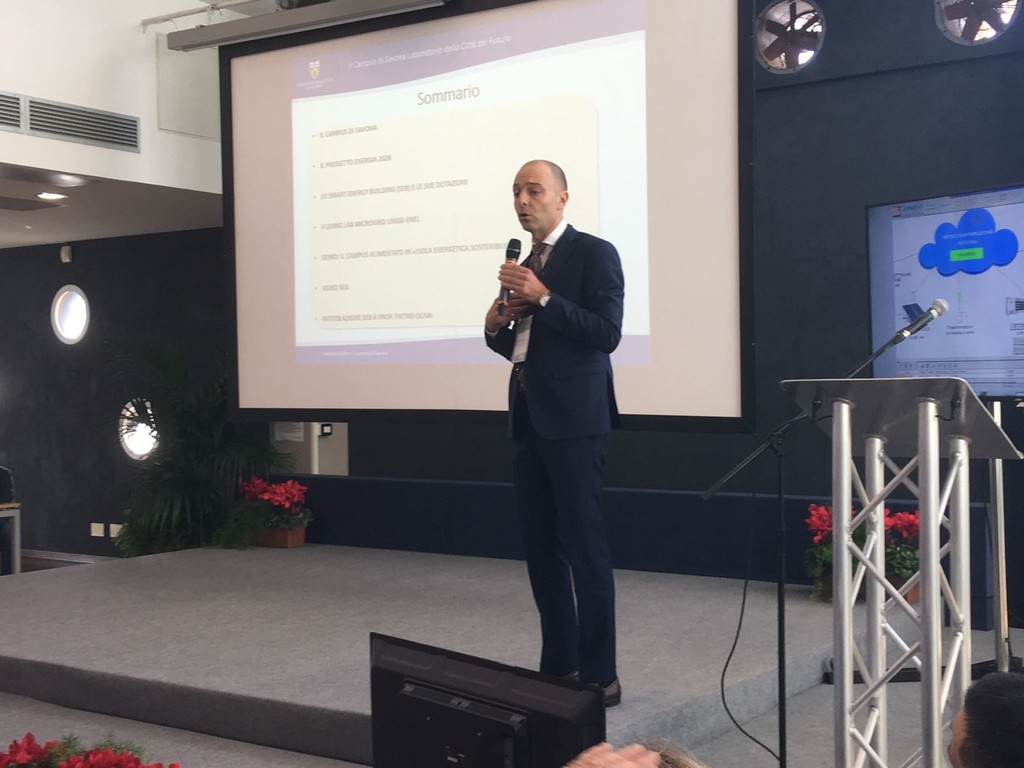Così il prorettore Federico Delfino ha spiegato il funzionamento della nuova palazzina “Smart Energy Building” presente al campus universitario e intitolata a Pietro Oliva, matematico e docente di analisi matematica all’università savonese.