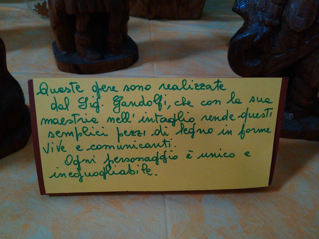 Ma alla mostra dei presepi di Finalpia, dove si può votare anche il proprio presepe preferito, non troverete soltanto questa bella Finalpia in miniatura, ma anche molto altro, come ci racconta Olga: “Ci sono elaborati realizzati dai bambini della scuola materna, delle elementari e dai ragazzi che frequentano l’Oratorio, ma anche opere di stimati artisti locali, come le sculture intagliate nel legno di Giorgio Gandolfi, che oggi ha 87 anni”.