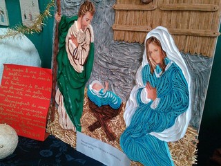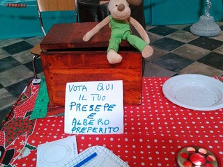 E mentre giriamo nella sala dell’Oratorio veniamo letteralmente rapiti dalle opere dei bambini, ma anche dal grande albero di Natale in materiale riciclato, dal presepe ricavato dalle pagine di libro sapientemente ripiegate da Patrizia, dalla capanna del Bambin Gesù realizzata con pezzi di arnie a simboleggiare l'importante produzione di miele della zona, dal grande trenino elettrico con componenti di oltre 40 anni fa… Insomma: sembra una vera e propria favola realizzata da e per bambini da 0 a 90 anni!