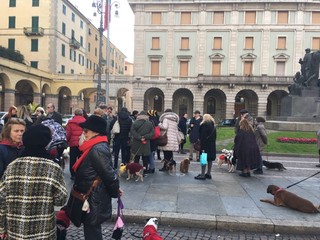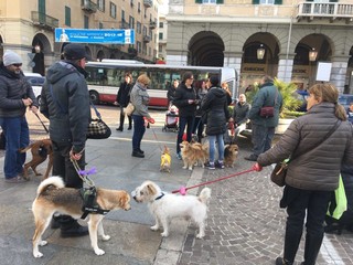 I cittadini hanno portato i loro cani, quasi un centinaio, a manifestare contro l’ordinanza firmata lo scorso martedì dal sindaco di Savona Ilaria Caprioglio che prevede il divieto agli amici a quattro zampe di fare i bisogni sotto i portici di Via Paleocapa, Piazza Mameli e corso Italia, obbligando come unica soluzione (oltre all’obbligo già presente della raccolta degli escrementi con i sacchetti, bisogna portarsi sempre dietro una bottiglietta d’acqua) i proprietari a trascinare i cani giù dai marciapiedi.