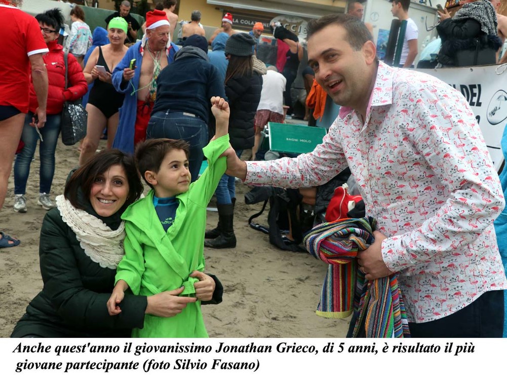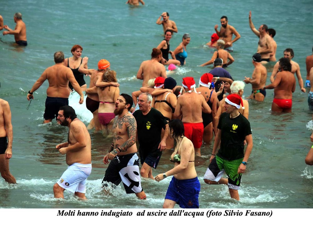 All'appuntamento sono arrivati in circa 180, accolti da un timido sole che presto è sparito per far posto, al momento del tuffo, ad un' altrettanta timida pioggia.Divertimento scontato per i partecipanti di tutte le età (gli ultra ottantenni Carla Carli, Alessandro Nativi e Salvatore Lombardo e i giovanissimi Jonathan Grieco e Sebastian Rosso, entrambi di 5 anni. Diversi erano accompagnati dai loro simpatici cagnolini).