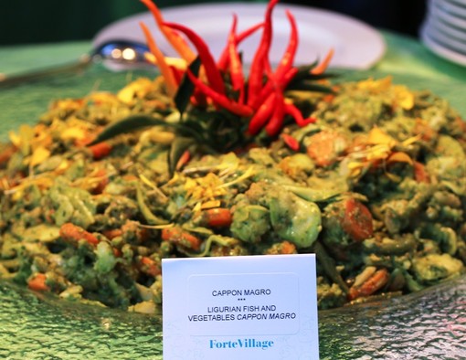 Siamo comunque in Liguria e a tavola non dovrebbe mancare il simbolo del Capodanno, il Cappon Magro, sontuoso e di lunga preparazione, nato nel ‘500 come “scorciatoia” per i giorni di Quaresima e diventato, nel corso degli anni, uno dei piatti, se non il piatto principe del Capodanno in Liguria. Si tratta, se vogliamo, dell’anello di congiunzione tra le due grandi cucine liguri, quella di mare e quella di terra. La Cuciniera Genovese del 1864 definisce il Cappon Magro come “la Regina delle insalate” grazie alla presenza di aragoste, orate o spigole, frutti di mare, gamberi, scampi e gli ortaggi, splendidi, della Liguria: cavolfiore, carciofi, fagiolini e scorzonera. Il tutto cotto separatamente, assemblato nella fiammanghilla, il grande piatto da portata in ceramica bianca, tipico della Liguria, assieme alle gallette del marinaio, arricchito da fettine di bottarga e condito con la salsina verde ligure, fatta con olio, aceto, aglio, capperi, acciughe e poco prezzemolo (a seconda delle zone) e guarnito con sottaceti, uova sode e olive. Un piatto che risulta un pochino più complicato da preparare, ma ormai entrato nel cuore di molti clienti e nei menù di tanti ristoranti.