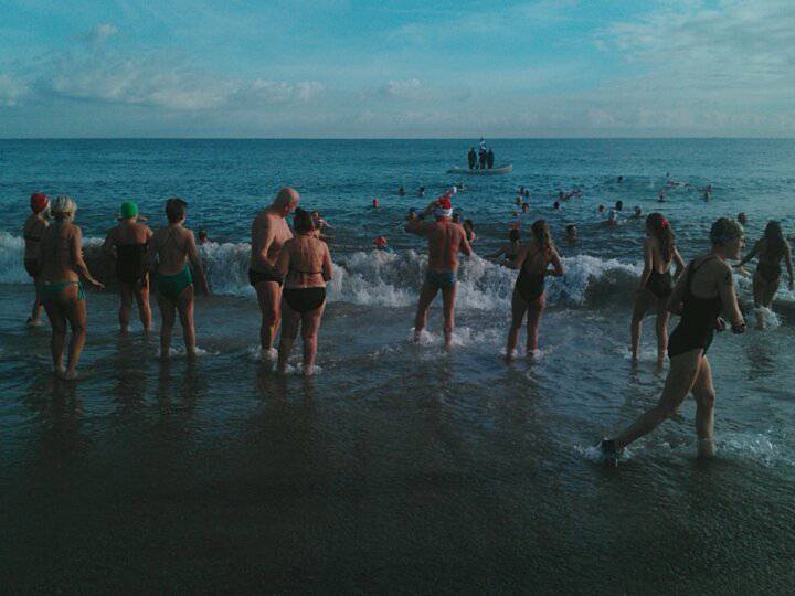 Il cielo coperto, ma le temperature non particolarmente rigide, hanno reso l'evento presentato da Stefano Mentil con il riscaldamento muscolare curato da Rino Pizzo, una occasione per animare con la tradizionale goliardia dell'evento l'atmosfera, infatti le temperatura esterna è di 8 gradi, del mare 14 gradi.