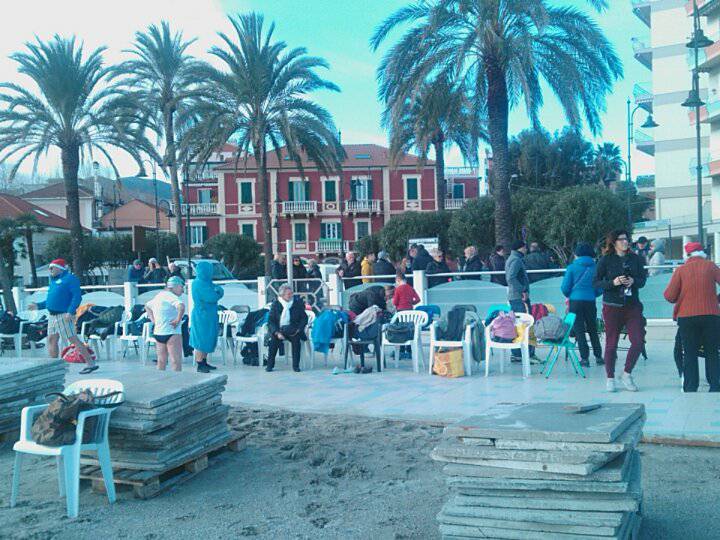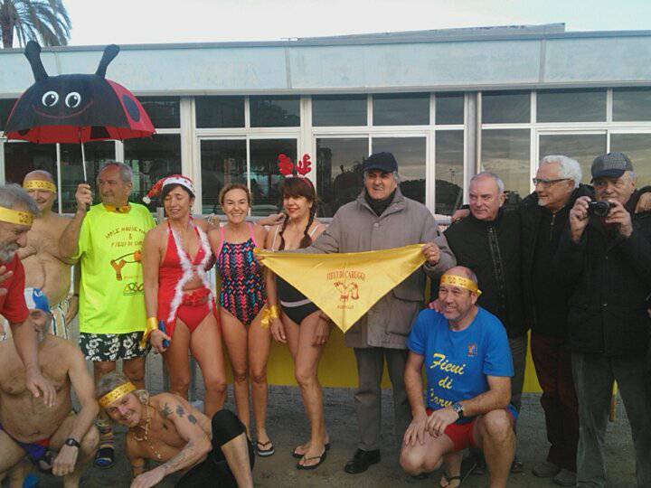 Alla manifestazione ha partecipato il gruppo Alpini di Albenga che ha offerto agli ardimentosi tuffatori ottimo vin brulè e the caldo.