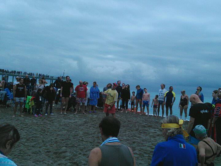 Come da tradizione, la 25* edizione si è tenuta ai Bagni Giardino. La temperatura dell'acqua oggi era di 14 gradi, cosi come l'aria esterna. I partecipanti sono stati 173. Alcuni dei quali hanno affrontato prima del tuffo la Camminata dei 3 colli di Pietra