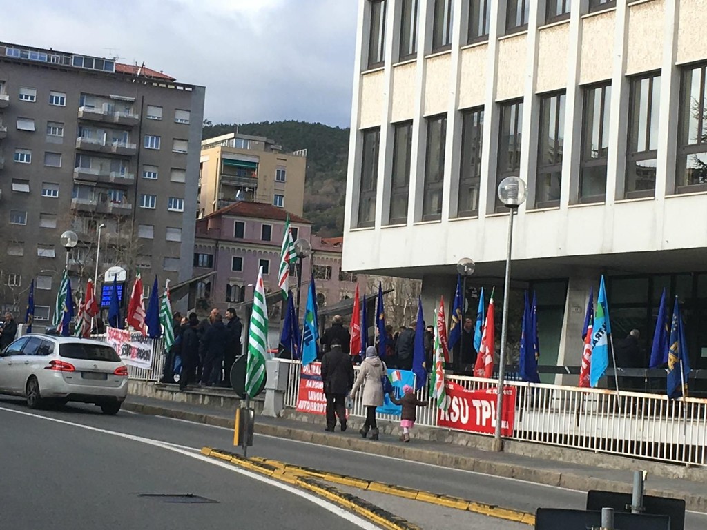 Una scelta dettata dall’impossibilitá del trasporto pubblico locale di poter concorrere da sola al bando (per non parlare dei Comuni, Savona in primis non riuscirebbero a coprire il capitale richiesto) ma i sindacati non ci stanno e questa mattina oltre al presidio si è svolto un incontro in Provincia con la presidente Monica Giuliano.