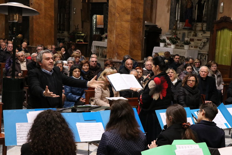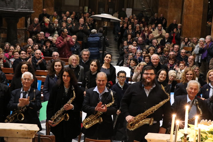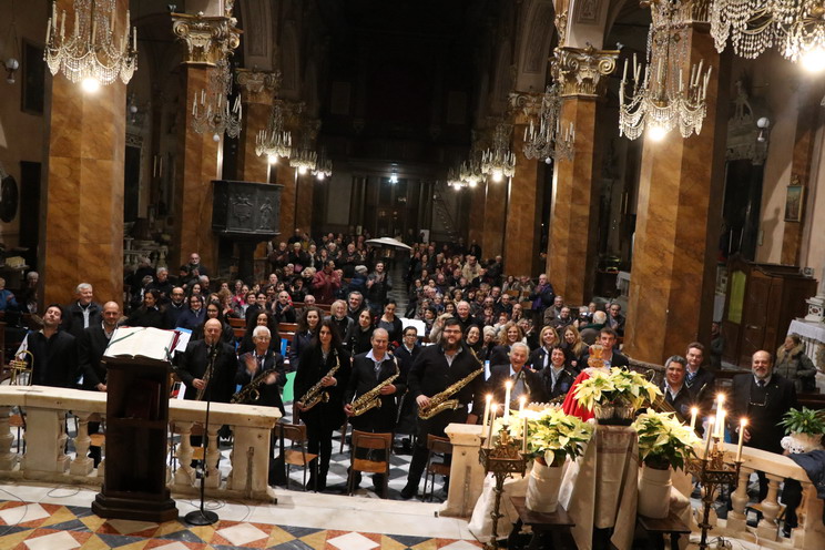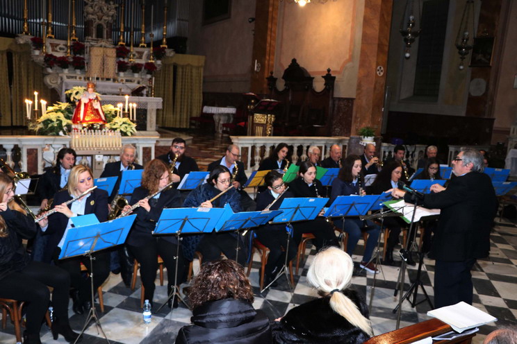 Il "padrone di casa" don Angelo De Canis ha volentieri allestito la collegiata per ospitare la Banda di Alassio che, diretta dal maestro Giovanni Puerari, si è esibita in vari brani natalizi di successo (White Christmas, Oh happy Day, Adeste Fideles) per terminare con "La marcia di Radetsky".