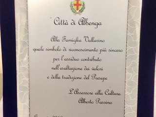 Le realtà Ingaune, da sempre impegnate nella tradizione del presepe, come le Confraternite di Albenga, Bastia, i frati del Santuario di N.S. di Pontelungo e di recente appunto, il quartiere Sant'Eulalia, hanno voluto condividere questo momento, con sindaco e assessore, consegnando insieme una targa che riconosce l'impegno cinquantennale della famiglia Vallarino. Impegno che di generazione in generazione tramanda la tradizione del Presepe e la rinnova ogni anno, valorizzando cio' che più rappresenta la nostra cultura e tradizione in questo periodo di feste.
