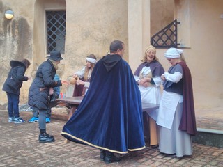Dopo Marina e Pia, ci spostiamo a Finalborgo, anzi: più precisamente sulle alture alle spalle del Borgo, nella suggestiva e affascinante cornice del Castel San Giovanni, dove il Centro Storico del Finale celebra da anni una antica e nobile tradizione risalente al Marchesato del Carretto, il "Dinò da Nuxe" (il Natale delle noci), cioè il gesto del Marchese di donare ai "viandanti" delle noci come simbolo di buon augurio e di prosperità.