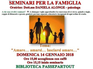 L'associazione cristiana "Veriamici Onlus" presenta una serie di seminari in famiglia con oratrice la dott.ssa psicologa Daniela Alonge. Il tema sarà "Amare… amarsi… lasciarsi amare…”.