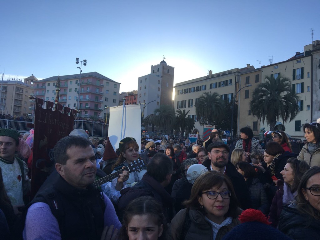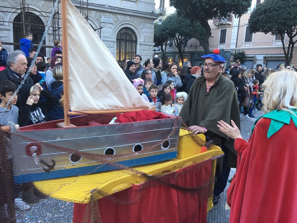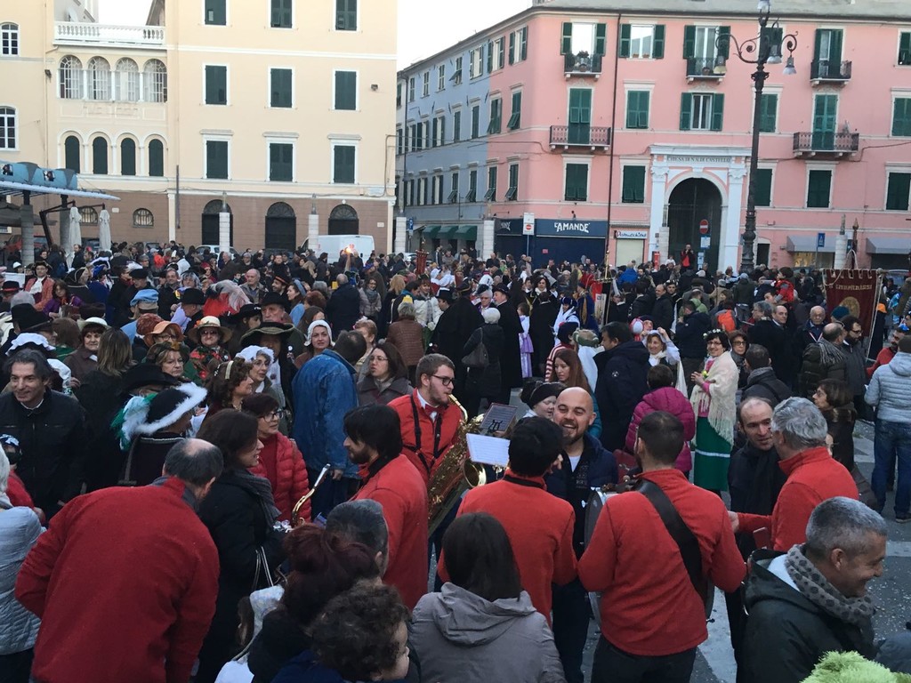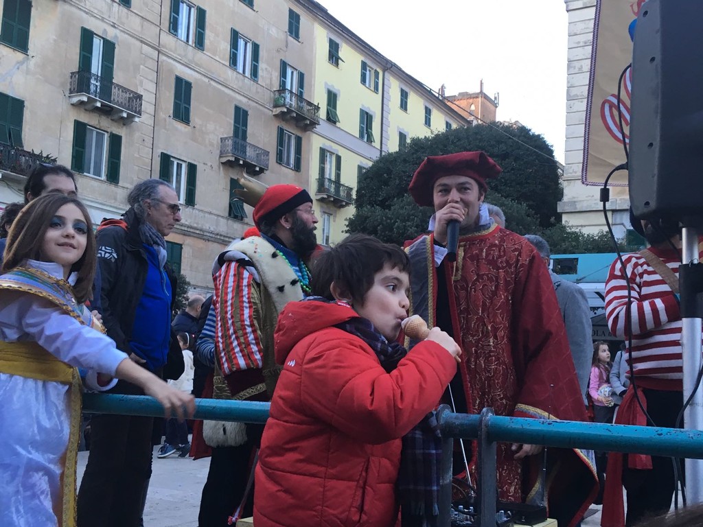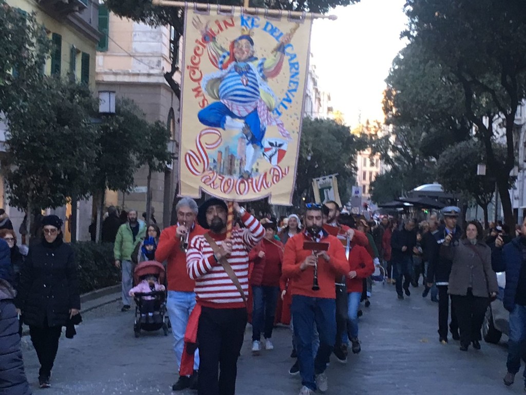 Arrivato a terra ha sfilato per le vie cittadine: via Gramsci, via Paleocapa e corso Italia insieme al gruppo storico della Campanassa e ai borghi savonesi mascherati.