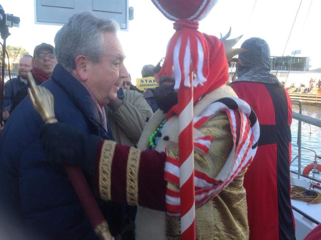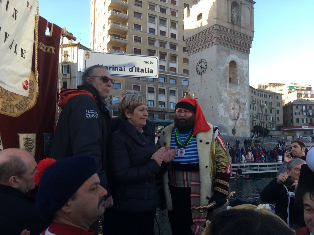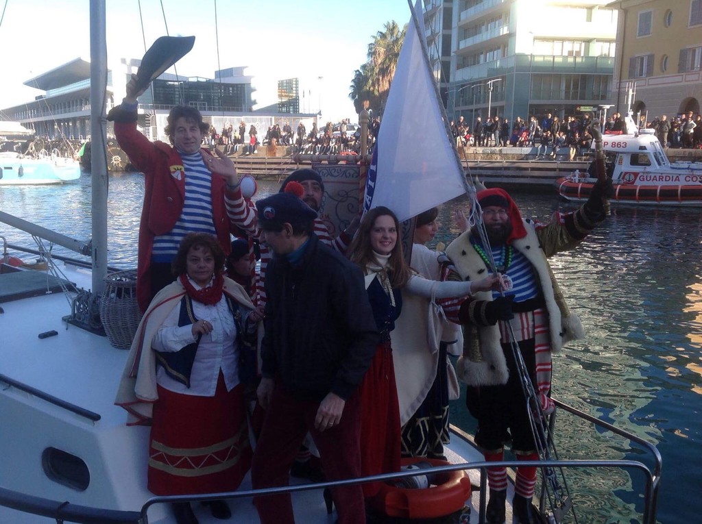 Il re savonese del Carnevale è sbarcato alle 16.00 alla Torretta dal mare insieme alla sua corte, i bambini mascherati e la banda Forzano, che lo hanno accompagnato sulle barche dell'Assonautica.