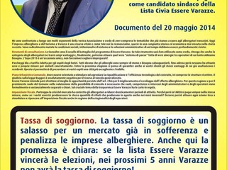 Il primo ricorda tutti i punti della lista “Essere Varazze” e naturalmente quello sulla tassa di soggiorno: “La tassa di soggiorno è un salasso per un mercato già in sofferenza e penalizza il settore alberghiero. Se la lista “Essere Varazze” vincerà le elezioni nei prossimi cinque anni a Varazze non ci sarà la tassa di soggiorno” recita il programma.
