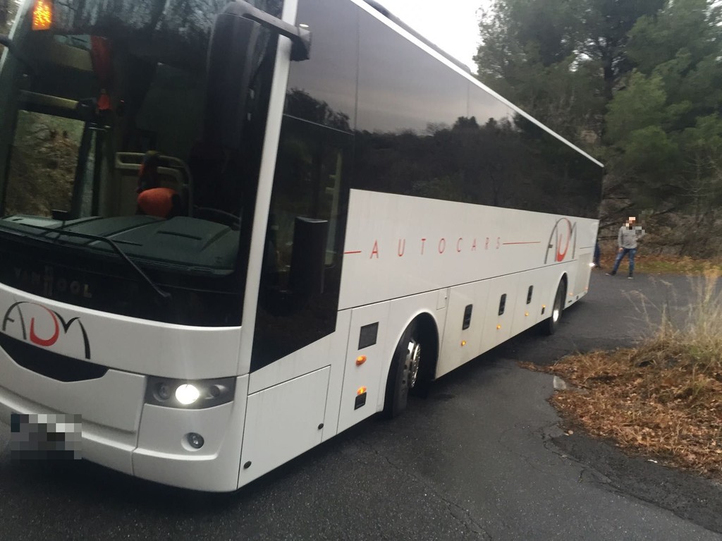 Arnasco, pullman bloccato fra i tornanti (FOTO)