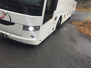 Arnasco, pullman bloccato fra i tornanti (FOTO)