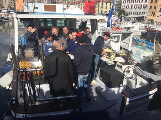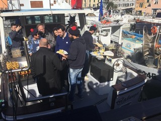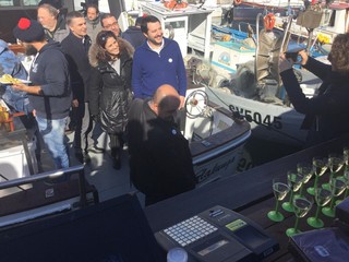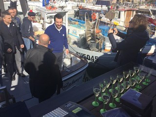 Al termine della conferenza, Matteo Salvini si è intrattenuto in darsena ad assaporare alcune prelibatezze marinare preparate per lui dai giovani pescatori/chef del peschereccio "Alalunga".