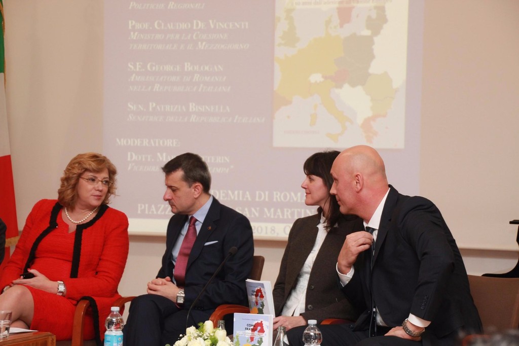 Oltre agli autori del libro, son intervenuti il commissario Ue per le Politiche regionali, Corina Crețu, il ministro per la Coesione territoriale e per il Mezzogiorno, Claudio De Vincenti, la senatrice Patrizia Bisinella, l’ambasciatore della Romania in Italia, George Bologan. I relatori convenuti, tutti esponenti di primo piano delle élite intellettuali e politiche dei due Paesi, hanno, con i loro interventi, confermato la sostanza del libro, sintetizzata nel titolo: italiani e rumeni sono popoli fratelli.