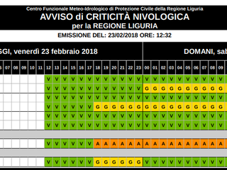 La Protezione Civile Regionale ha diffuso l'allerta meteo per neve diramata da Arpal con le seguenti modalità: