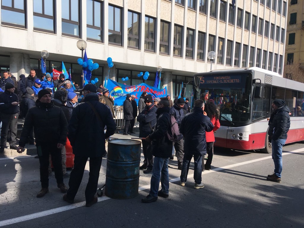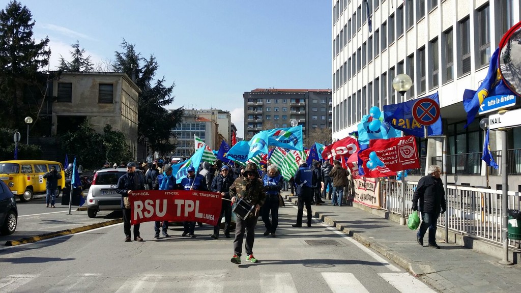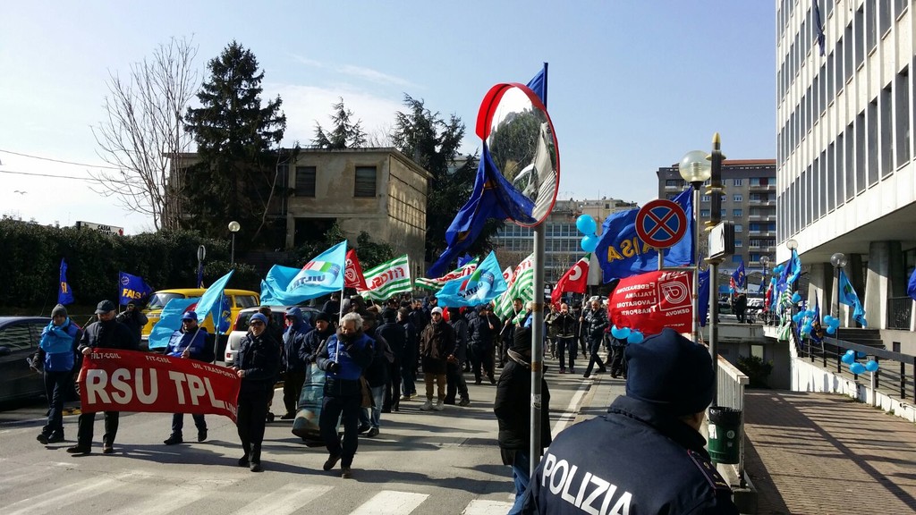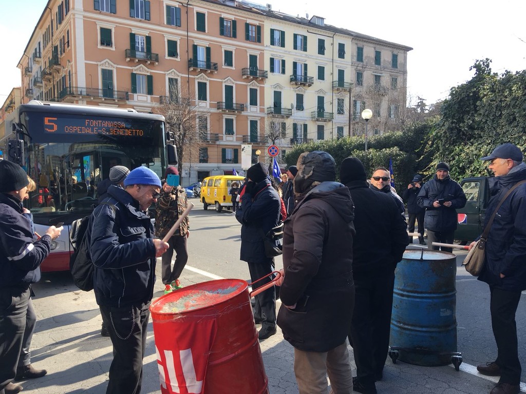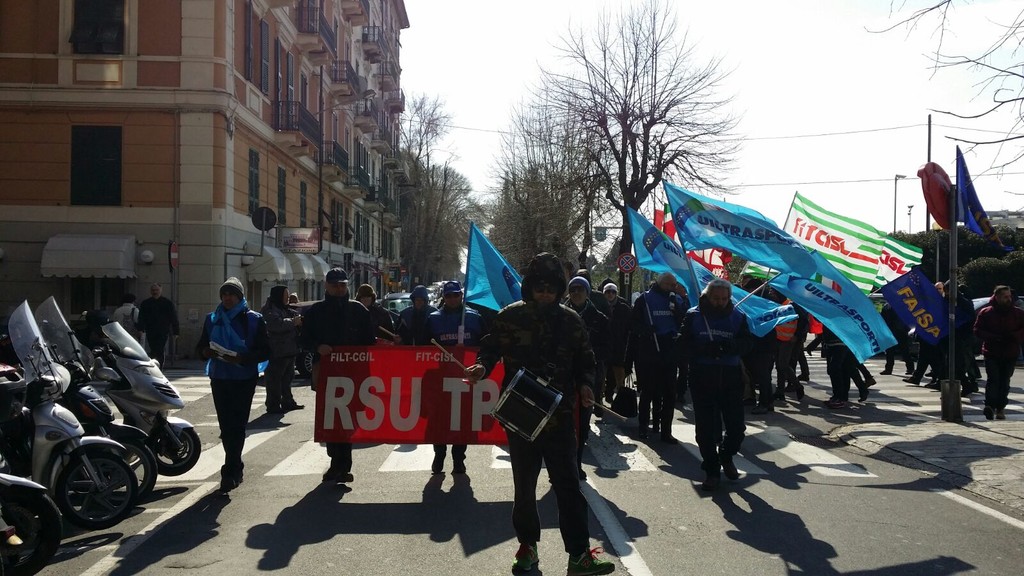 Più di 100 persone tra lavoratori, rsu e sindacati (Cgil, Cisl, Uil e Faisa) si sono ritrovati sotto la sede della Provincia a Savona per scioperare contro la privatizzazione del Trasporto Pubblico Locale.