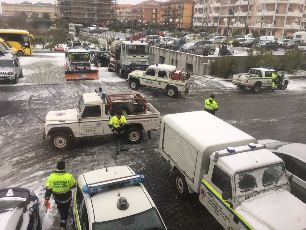 Paesaggio lunare per il risveglio di Andora dove la nevicata ha imbiancato le spiagge, il centro e le frazioni. Nel periodo di maggiore intensità dell’allerta nivologica hanno operato sul territorio di Andora e dell’Unione Valmerula e Montarosio ben 40 volontari della Gruppo intercomunale di Protezione civile che, insieme agli operai comunali, hanno realizzato le operazioni di pulizia delle strade, sia con mezzi meccanici che con le pale. I mezzi spazzaneve e spargi sale hanno effettuato dai due ai tre passaggi nelle strade del centro di Andora e nelle frazioni dell’entroterra, portando la situazione alla normalità e eseguendo interventi mirati a seconda delle diverse problematiche. Alle operazioni ha partecipato anche il sindaco Mauro Demichelis che ha monitorato costantemente gli interventi insieme a Fabio Curto, Responsabile della Protezione Civile e al Comandante della Polizia Locale Paolo Ferrari.