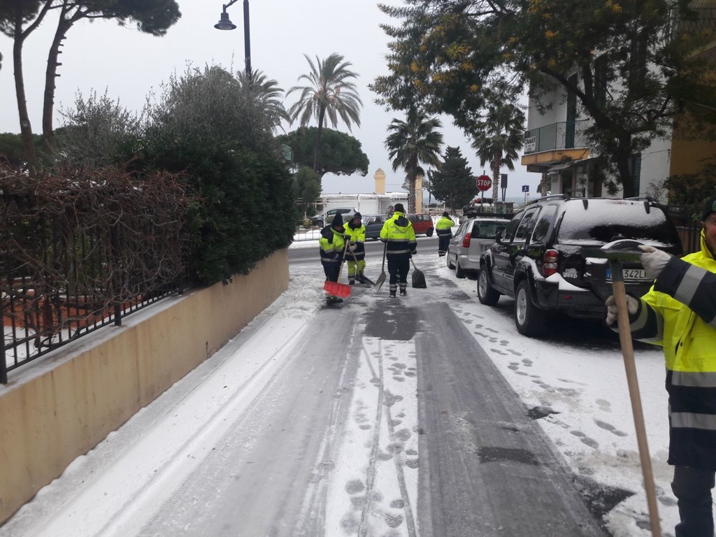 Una vera e propria task force di volontari della Protezione Civile, dipendenti comunali, agenti della polizia municipale, personale dell'ufficio tecnico, assistenti sociali e medici di Laigueglia Salute si è messa in moto da questa notte per far fronte all'emergenza neve che ha colpito anche Laigueglia e il resto del ponente savonese.