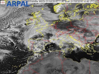 LA SITUAZIONE: nella notte si sono avute nevicate diffuse, a carattere nevoso anche sulle coste ed in prevalenza deboli, anche se localmente si sono avuti rovesci più intensi. Segnalati fenomeni da moderati a forti sul confine francese con accumuli nevosi di diversi centimetri. Qualche accumulo superiore è stato registrato anche nell'interno ligure dai nivometri della rete ARPAL: 5 cm a Triora, 8 cm Monte Settepani, 9 cm ad Urbe, 4 cm a Sesta Godano. Nevicate segnalate su tutti i tratti autostradali della regione ma senza particolari criticità. La ventilazione è sostenuta da Nord, Nord-Ovest con raffiche di 109.4 km/h a Marina di Loano e 84.6 al Colle di Cadibona. Le precipitazioni intermittenti sono riprese, a metà mattinata, soprattutto nella parte centrale della regione.