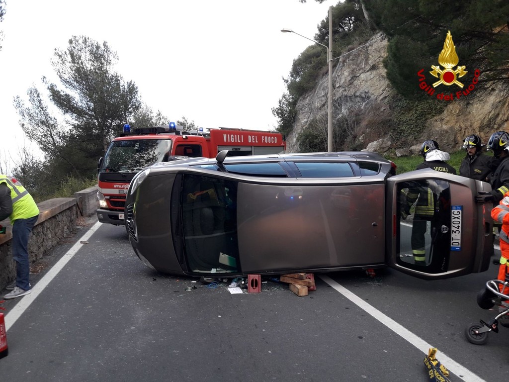 Intorno alle 16.00 un auto si è ribaltata in località Capo Santo Spirito a Borghetto.