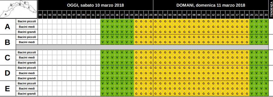 ALLERTA GIALLA SU TUTTE LE ZONE E SU TUTTI I BACINI FINO ALLE 20 DI DOMANI, DOMENICA 11 MARZO.