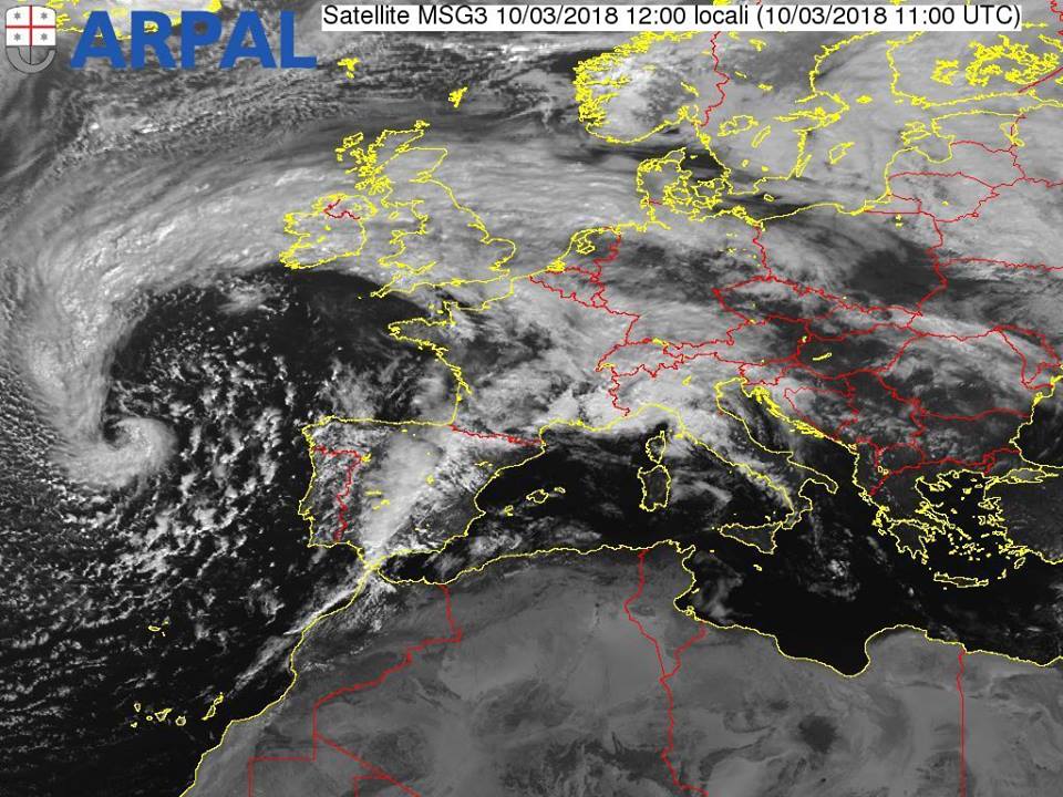OGGI, SABATO 10 MARZO: una perturbazione atlantica si avvicina al Mediterraneo determinando una intensificazione dei flussi umidi sulla Liguria. Sono attese piogge sparse e rovesci o isolati temporali, localmente moderati su ABCDE con cumulate fino a significative su CE; a partire dalla serata alta probabilità di temporali forti o organizzati su ABCDE.