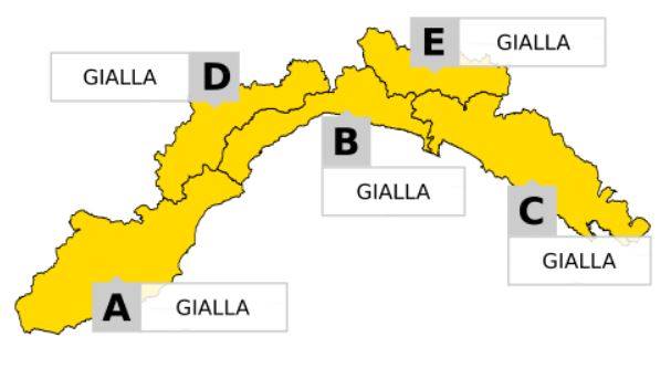 La Protezione Civile Regionale ha diffuso l’allerta meteo per piogge diffuse e temporali diramata da Arpal, prolungata e modificata secondo le seguenti modalità: