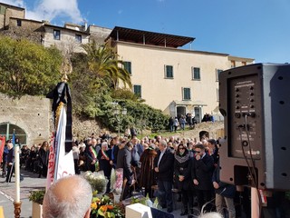 A rendere omaggio alla sua memoria il gonfalone della Città delle Torri, ma anche i colori della Trinacria simbolo della Sicilia ed Alessandro Plumeri, il sindaco di Villalba, paese di origine di Rosy.