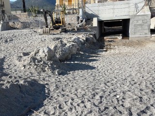 E qui il capogruppo della Lista Civica dei Pietresi passa alla trattazione tecnica: “Le cose che balzano più evidenti, alla vista, sono: il "dislivello" notevole, in altezza, che si è creato nei confronti della spiaggia dal Rio stesso verso ponente, che rende nei fatti impossibile accedere alla nuova passeggiata; la presenza di un allagamento "cronico" sotto tutta l'ampiezza del ponte ferroviario ed oltre.