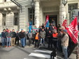 Presidio dei sindacati Cgil, Cisl e Uil sotto il Comune, questa mattina in attesa della ‘maratona’ dedicata a Rivieracqua, con la Conferenza dei Sindaci e la successiva assemblea della società.