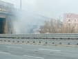 Incendio di sterpaglie vicino alla strada di scorrimento Vado-Savona