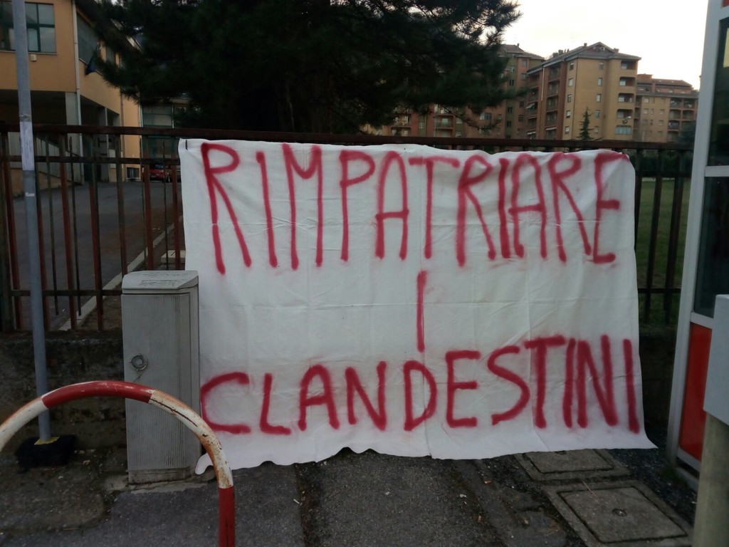 Uno striscione, appeso ai cancelli della scuola "G.C. Abba"di Cairo Montenotte, recante una scritta inequivocabile: "Rimpatriare i clandestini". Un messaggio eloquente di cui però non si conoscono gli autori.