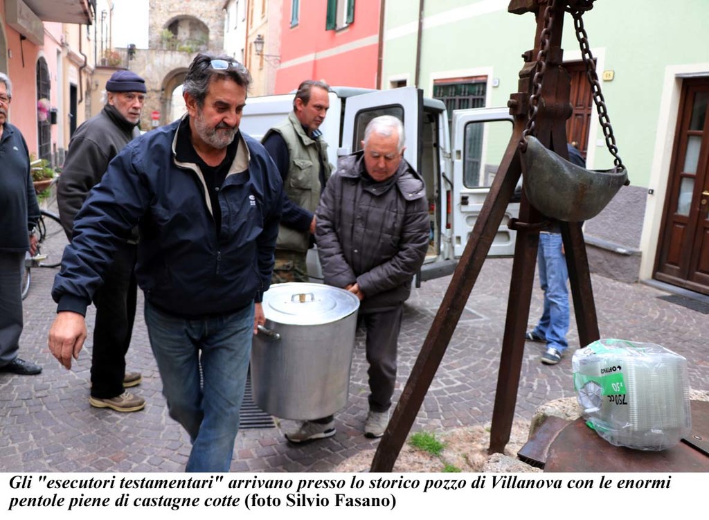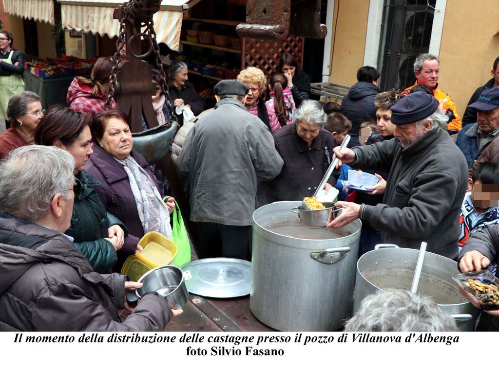 A Villanova d'Albenga non si è interrotta l'usanza di distribuire gratuitamente alla popolazione le castagne cotte presso il caratteristico pozzo nel centro storico della cittadina.