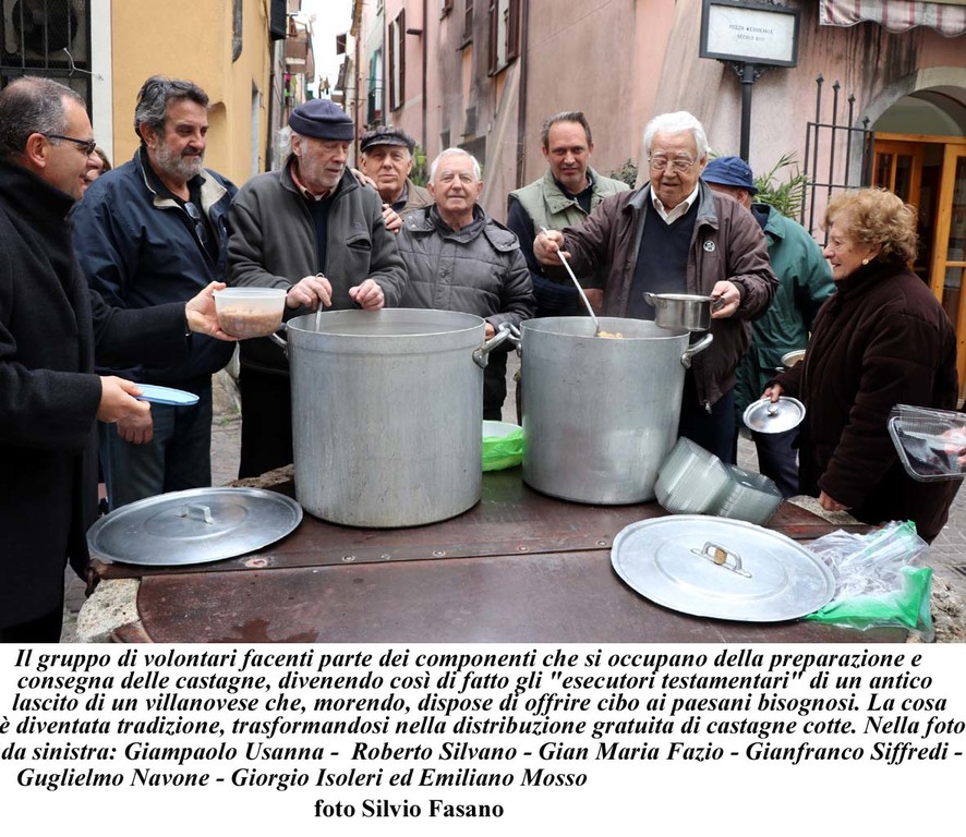 Questo piccolo evento, è ormai diventato tradizione in seguito ad un lascito avvenuto due secoli fa circa da parte di un facoltoso villanovese che, tra le sue disposizioni testamentarie, volle che si impiegasse un buona parte del suo denaro per distribuire cibo ai paesani bisognosi. Tale avvenimento, come anzi detto, è diventato tradizione e si è trasformato nella consegna di castagne cotte, preparate da volontari che fanno parte del gruppo degli "esecutori testamentari" di fatto.