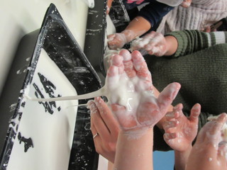 In un incontro tutti hanno sperimentato, con grande meraviglia, sensazioni tattili diversificate a seconda della pressione esercitata sul composto di acqua e maizena, che varia da uno stato liquido ad uno stato solido.