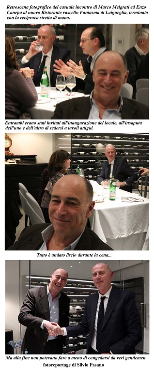 E' capitato che, in campo neutro, a Laigueglia, i due principali avversari, Enzo Canepa e Marco Melgrati, entrambi contendenti con lo stesso credo politico, si siano incontrati a loro insaputa (galeotto Angelo Marchiano, tiolare del Ristorante Vascello Fantasma) alla cena inaugurale del locale.