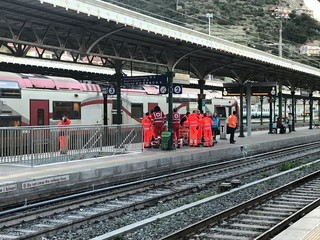 Gli scioperi per la riforma dei treni hanno colpito la Francia e i pellegrini disabili in partenza da Verona alla volta del santuario di Nostra Signora di Lourdes sono stati costretti questa mattina a una sosta obbligata alla stazione di Ventimiglia e grazie all'intervento della protezione civile e la Croce Verde di Albisola Superiore, la Croce Bianca di Savona, la Croce Rossa e la Croce Verde di Intemelia, sono riusciti a continuare il loro viaggio con un trasbordo dal treno ai 20 pullman messi a disposizione.