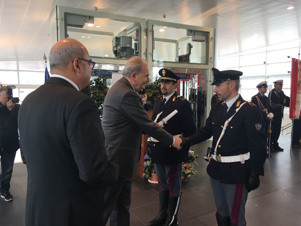 La cerimonia si è poi conclusa con la consegna dei riconoscimenti ai poliziotti che si sono distinti nella loro attività nel corso dell’anno: