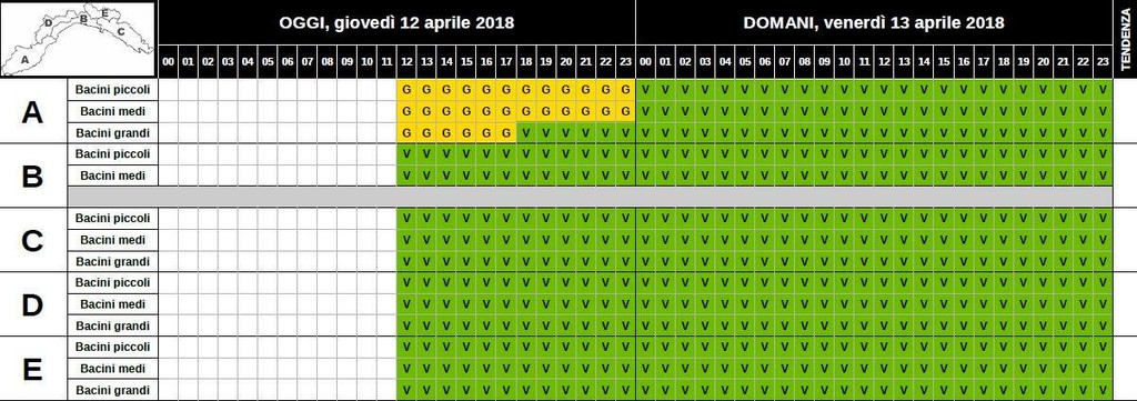La Protezione civile regionale ha diffuso l'allerta meteo emanata da ARPAL. Si tratta di un’allerta per piogge diffuse e temporali con questa scansione oraria: